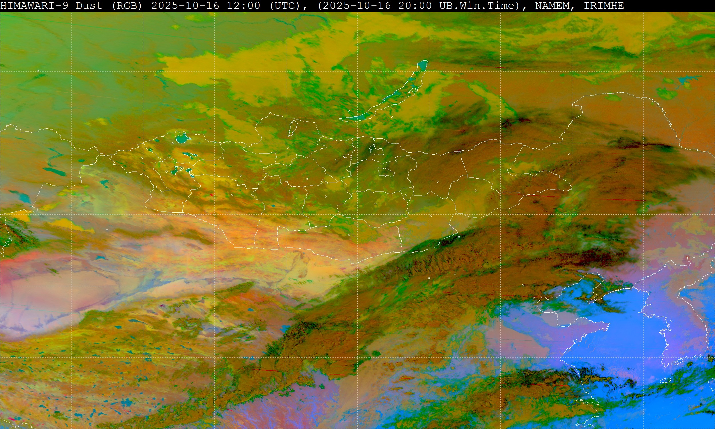 HIMAWARI-9 Байран хиймэл дагуулын їїлний хєдєлгєєнт зураг (Dust, 2km)