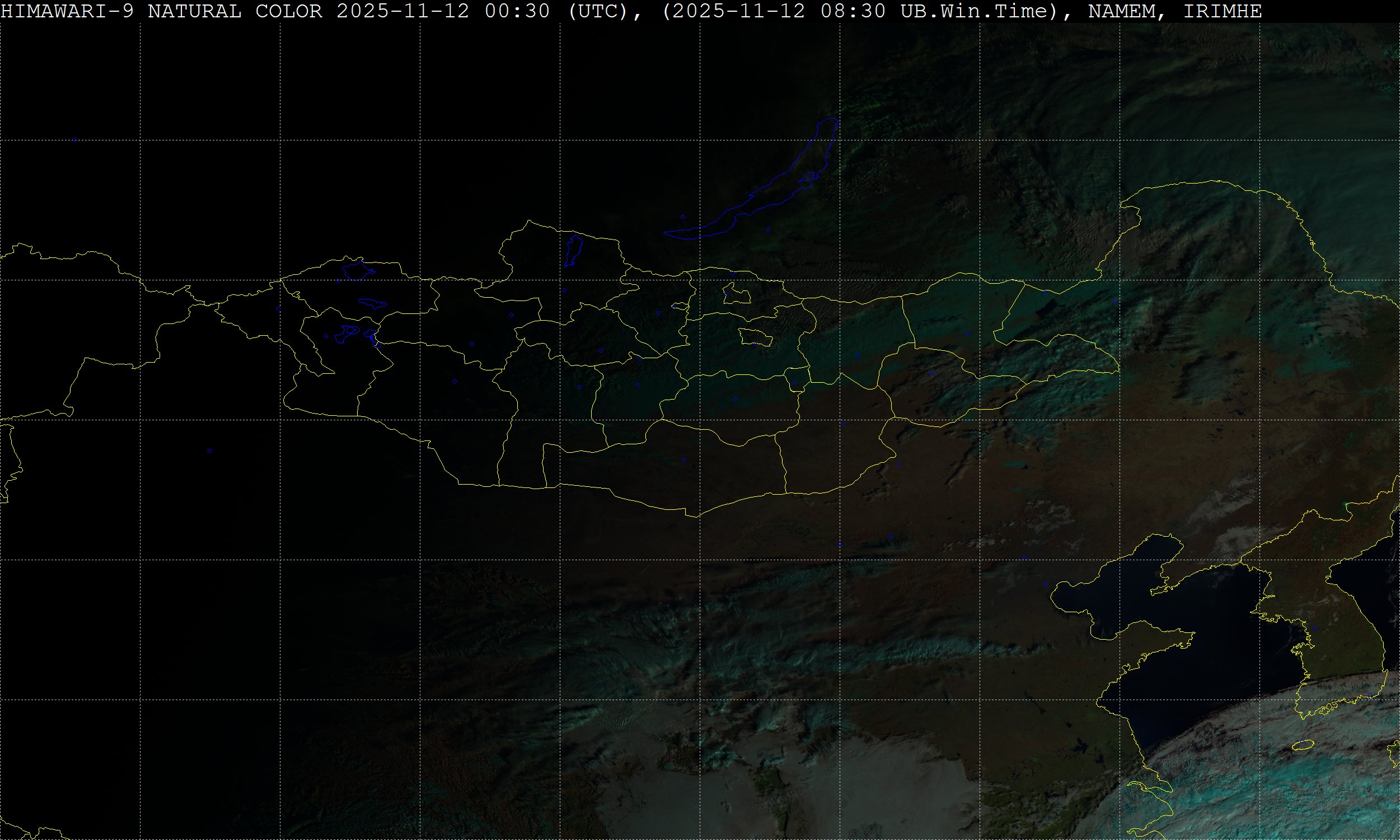 HIMAWARI-9 Байран хиймэл дагуулын їїлний хєдєлгєєнт зураг (Natural Color, 2km)